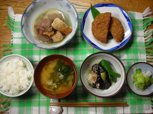 ・肉じゃが、なすとれんこんの天ぷら、卵豆腐
